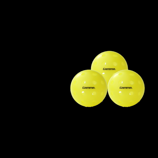 A pickleball ball is a hard plastic ball with small holes. It is lighter than most other racket sport balls, and flies with less speed. This makes it easier to play with than other racket sport balls. Indoor balls have fewer holes than outdoor, to minimise the effect of wind when playing outdoors.