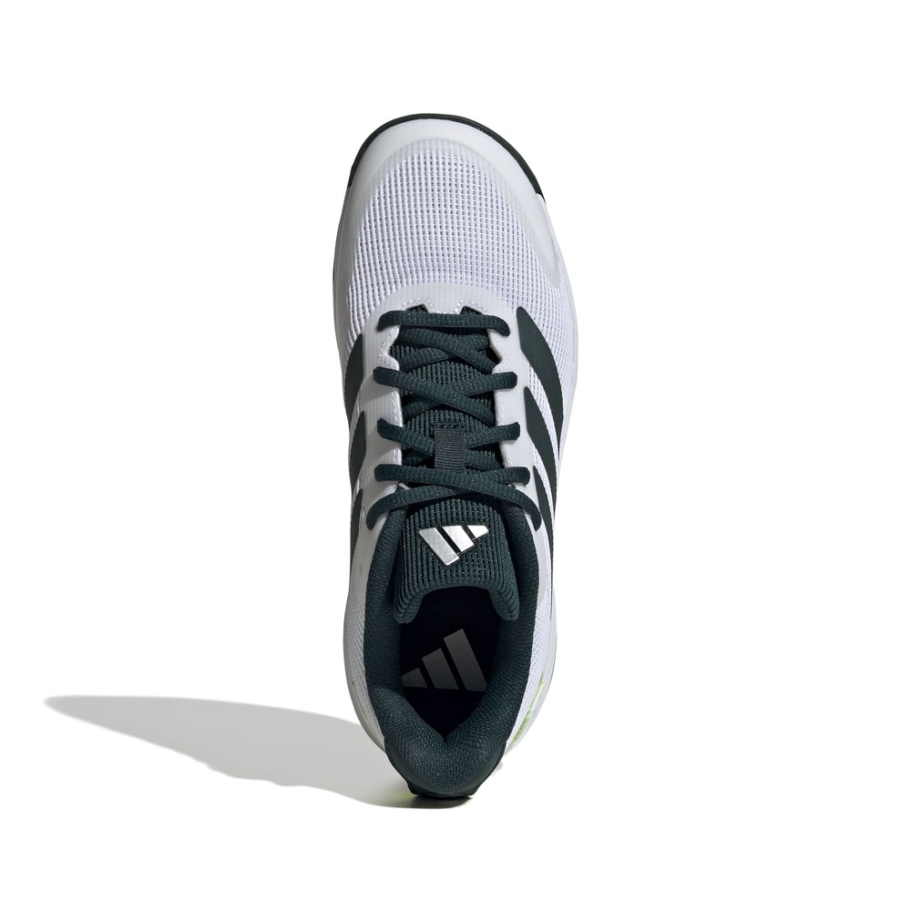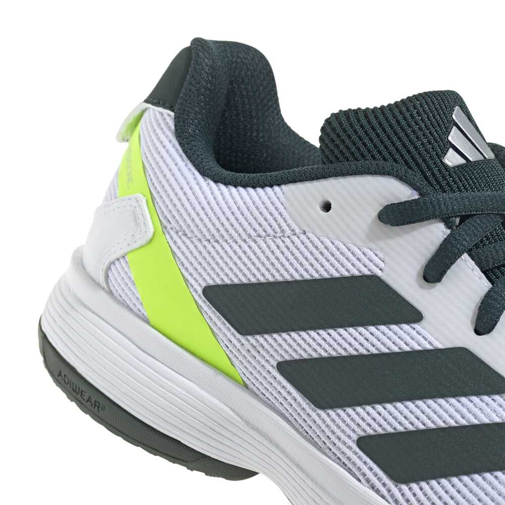 A secure lace-up closure ensures a snug fit, while the ADIWEAR outsole provides long-lasting traction and abrasion resistance on the court. Lightweight and responsive, these shoes help juniors stay quick on their feet during rallies and drills.