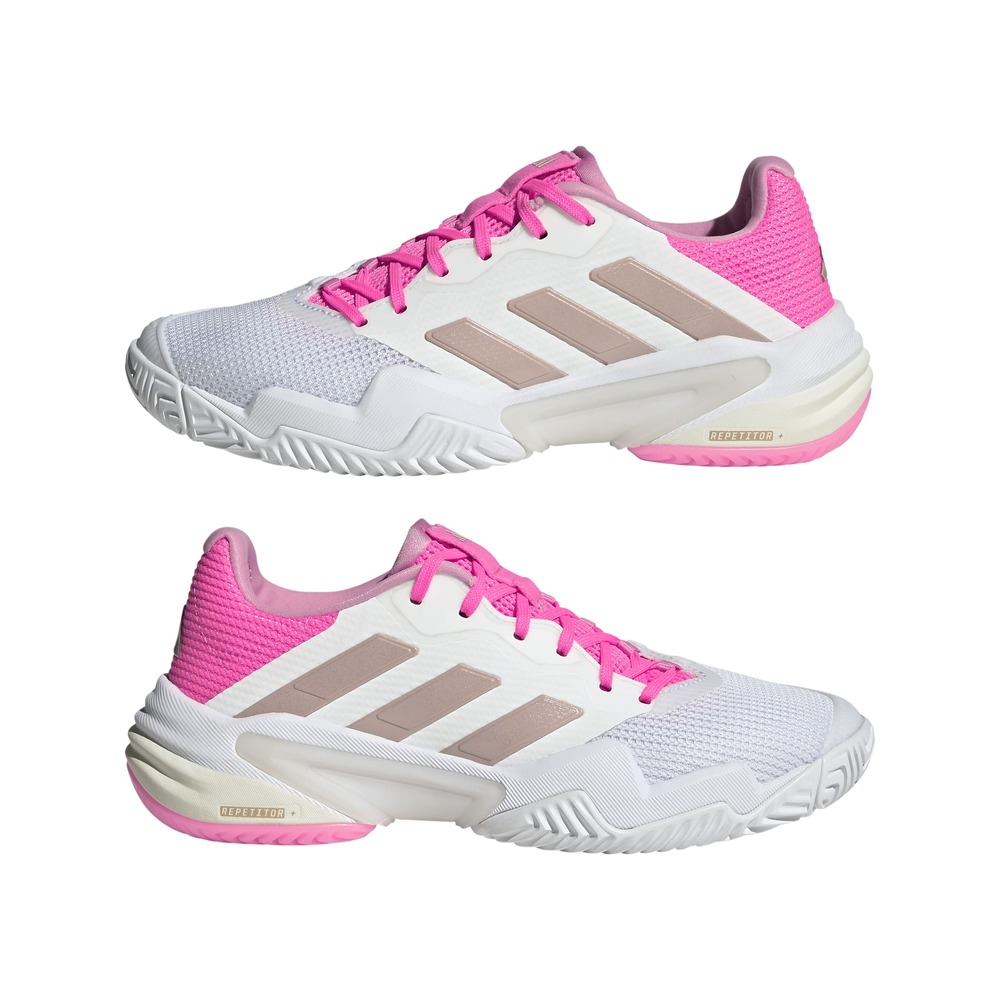 Durability is built in with ADITUFF-reinforced forefoot zones made from recycled materials and a tough ADIWEAR 2.0 outsole, ideal for hard courts. A dual-density Repetitor midsole enhances comfort and propulsion, and the breathable mesh upper keeps you cool during intense rallies.