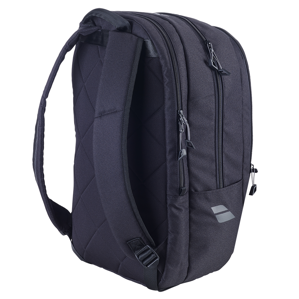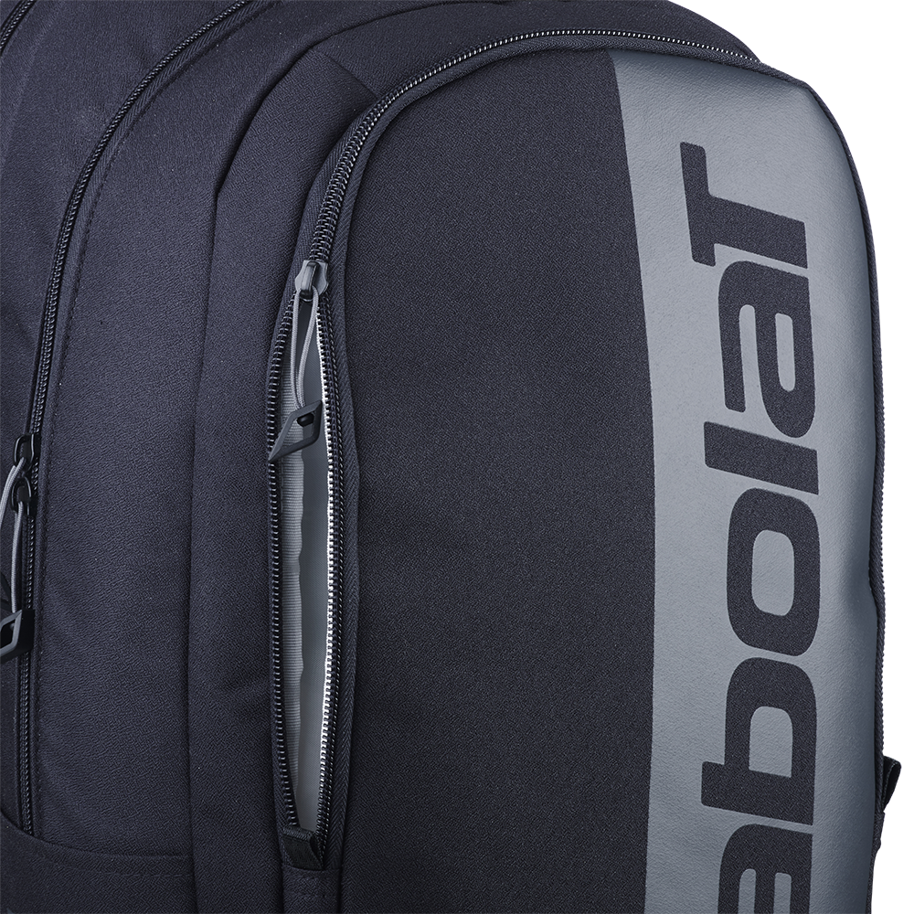 A durable technical tennis backpack designed to securely hold and protect two racquets and all your essentials for transitioning from the office to the court seamlessly. Crafted from tough recycled materials, including the outer material, canvas, and lining, it guarantees the durability and longevity synonymous with Babolat bags.