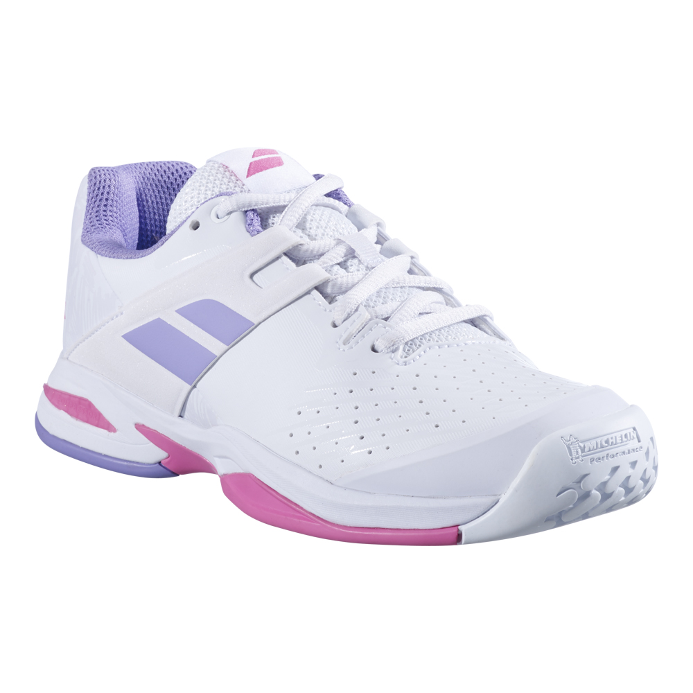 Babolat Propulse Junior All Court Tennis Shoe (White/Lavender)The Propulse Junior has been made for competitive junior with explosive footwork. The Propulse shoe offers maximum durability and ultimate support for future champions who are tough on shoes.