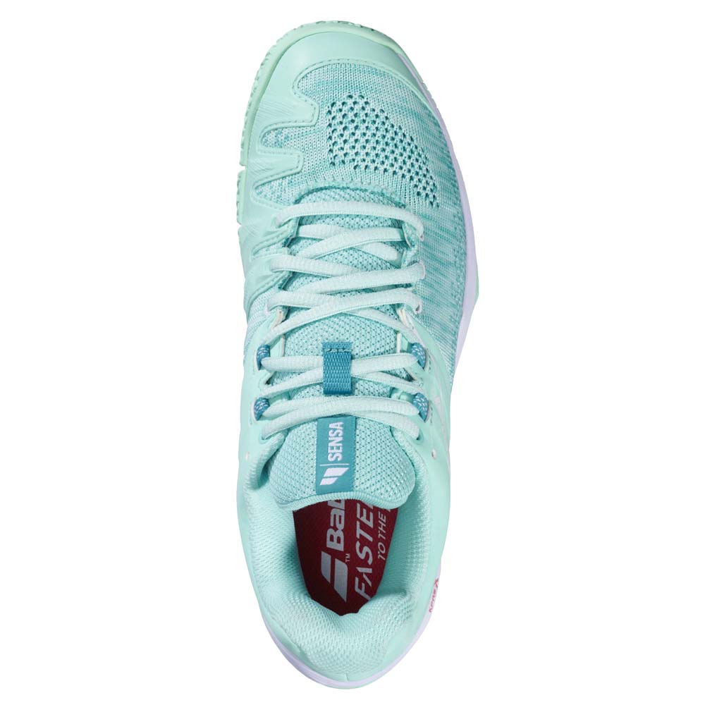 The Babolat Sensa is a dedicated 100% padel shoe designed for women, focusing on stability, safety, and a “slipper-like” comfort. Key Highlights: – Superior Stability: Features Power Straps (two side reinforcements) that secure the midfoot, providing extra confidence during sudden lateral changes and long rallies. – Premium Comfort: The technical knit forefoot offers a soft, flexible fit, while the moulded OrthoLite® insole adapts to the foot’s shape for breathability and durability. – Total Protection: The KPRSX system uses high-cushioning EVA foam to protect the entire heel area from impact shock during intense play. – Padel-Specific Grip: Developed with Michelin, the outsole features extra grooves for flexibility and a specialised tread designed for perfect traction on both sand-based and synthetic turf courts.