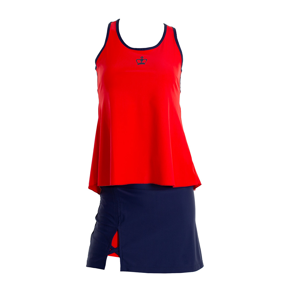 The Black Crown Colima Women’s Skirt is a Navy skirt that makes up the Colima outfit with the Vest Top, featuring a vibrant red and blue colour combination. It’s made from a durable and stretchy blend of materials, with 82% polyamide and 18% elastane, ensuring a comfortable and flexible fit. This Skirt is available in a wide range of sizes including M, L, XL, and XXL. The Colima Vest Top is sold separately to the Colima Skirt.