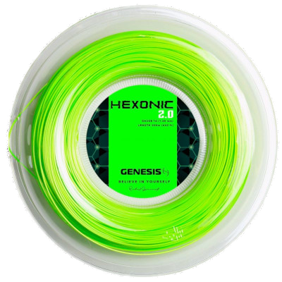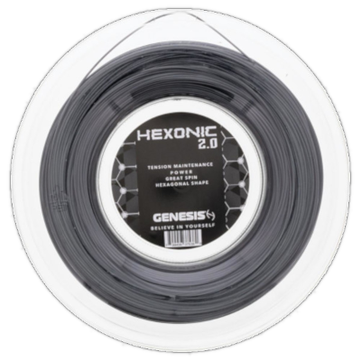 The six edges offers very impressive spin potential. Utilizing special chemical additives, Genesis Hexonic is extremely comfortable. The superior elongation characteristics of this string far surpass the competition. Great power and control combined with exceptional playability, Genesis Hexonic is a great value.