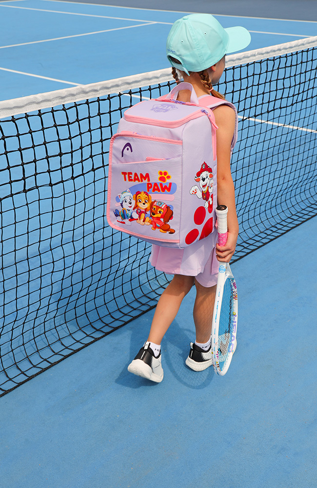 The Head Paw Patrol Backpack (Purple) is the perfect accessory for young tennis players and Paw Patrol fans. Designed with kids in mind, this compact and lightweight bag makes it easy for children to carry their own rackets around. It has a dedicated compartment that can hold up to two junior tennis rackets, as well as additional pockets for essential small accessories. The playful purple design, featuring beloved Paw Patrol characters, makes it a fun and practical choice for trips to the court, school, or any adventure.