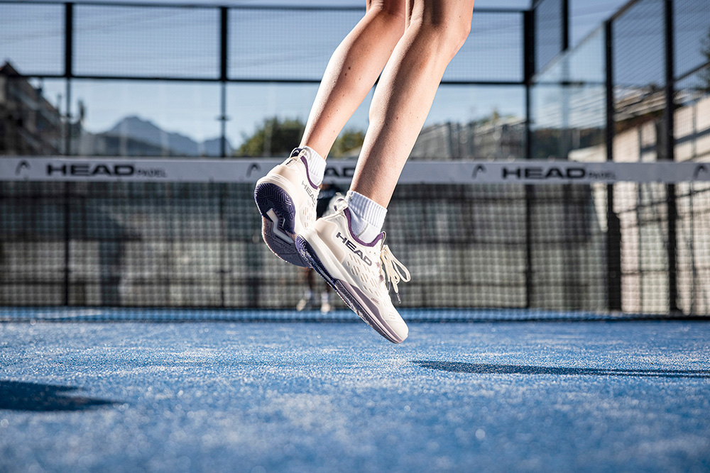 The midsole is made with lightweight, highly responsive DynaFoam, which contains small air cells. A midfoot cooling system is included for ventilation. The shoe is finished with HEAD branding that emphasises its premium, modern design.