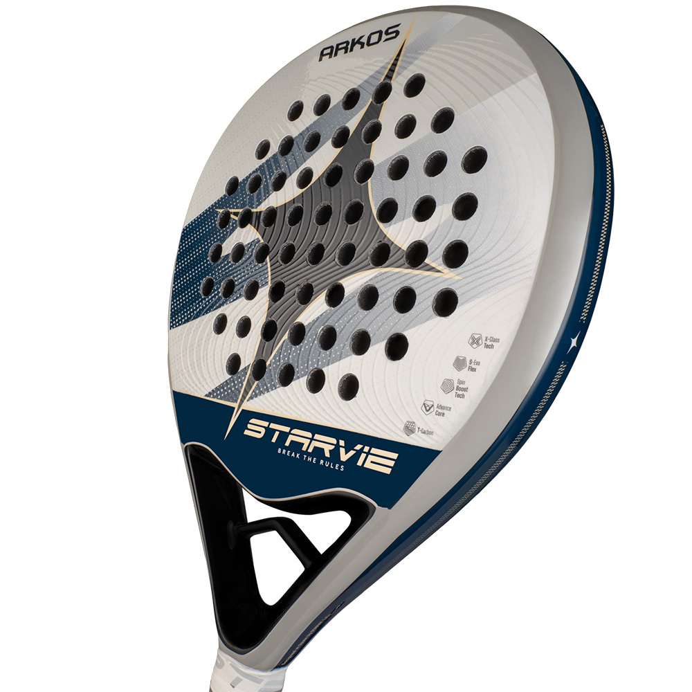 The Starvie Arkos (2026) is a round-shaped padel racket with a low balance, designed for beginners seeking maximum control and easy handling. It features an X-Glass Tech surface for improved elasticity and smooth ball output, while the S-Eva Flex soft foam provides a comfortable and fast response. The racket includes Advance Core technology, which is located in the heart of the racket to enhance stability and control, and reduce unwanted vibrations.