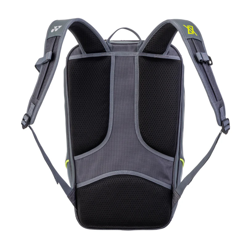 The Yonex Expert Backpack is part of the elite Viktor Axelsen Collection, designed for both performance and style. It features a signature deep grey color with vibrant neon lime accents. This backpack is suitable for training sessions, tournaments, or daily use. It is made from durable, abrasion-resistant polyester and PU and includes a dedicated compartment for 1-2 rackets, a spacious main section for gear, a separate shoe compartment, and multiple accessory pockets. For comfort, it has padded shoulder straps and back panel cushioning.