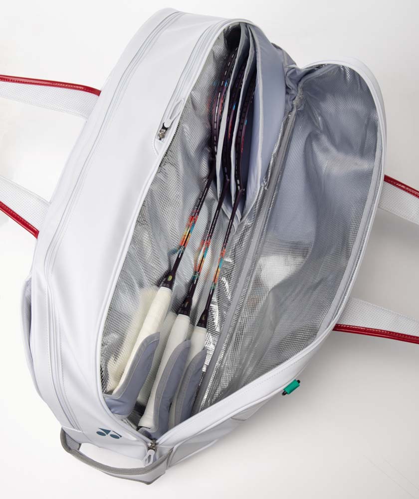 The Yonex Expert Tournament Bag is designed for competitive players seeking a spacious and stylish solution for their equipment.Measuring 75 x 19 x 32 cm, this bag features an innovative foldable structure for easy storage when not in use.It offers multiple compartments, including insulated sections to protect rackets from extreme temperatures, a dedicated shoe pocket to keep footwear separate, and additional pockets for apparel and accessories.Padded straps and an ergonomic design ensure comfortable transport.The bag also incorporates sustainable elements, such as a recycled polyester lining and a waterproof laundry bag.