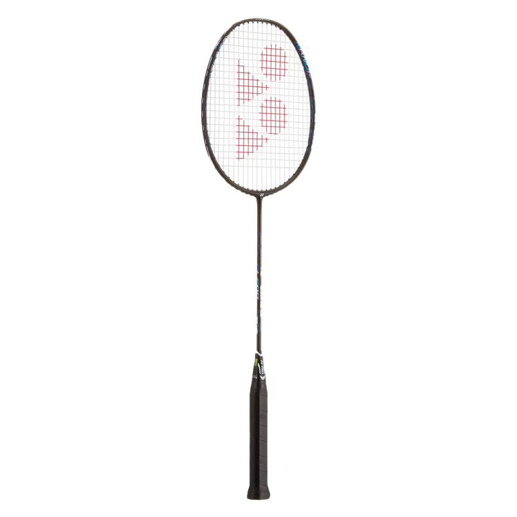 The Yonex Nanoflare 002 Clear is a badminton racket designed for beginners and developing players who prioritize speed and control. It has a Hi-Flex shaft and a HT Graphite frame, making it head-light and easy to handle, especially for fast-paced rallies and net play. The racket weighs approximately 83g (4U) and is 10 mm longer than a standard racket. It can be strung to a tension of 20 to 30 lbs, and the recommended strings are Nanogy 95 for control players and Nanogy 98 for hard hitters. The racket comes in Black/Blue.